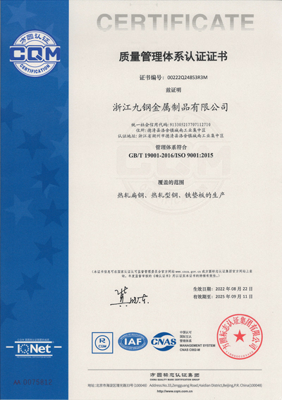 浙江九鋼公司于2015年加入省冶金協(xié)會(huì),并成為扁鋼國家標(biāo)準(zhǔn)起草制定的成員單位之一。